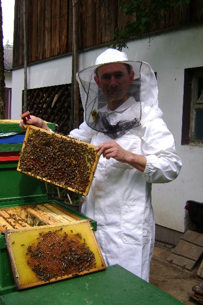 Liebe Besucher unserer Homepage!Möchte mich kurz vorstellen, mein Name ist Johann Maier, Bienenwirtschaftsfacharbeiter, zur Zeit in Ausbildung zum Imkermeister. Ich bewirtschafte mit meiner Frau ca. 50 Bienenvölker im schönen Innviertel. Ich lege sehr viel Wert auf eine naturnahe Imkerei, meine Bienen dürfen noch schwärmen, meine Wiesen dürfen noch blühen. Da ich eine kleine Landwirtschaft habe, bewirtschafte ich meine Wiesen selber und entscheide wie oft gemäht wird. Alle die Produkte (außer Honigbonbons) die auf dieser Homepage zum Kauf angeboten werden, sind aus eigener Erzeugung. Da wir auch seit Jahren ein Honigland OÖ Qualitätsbetrieb sind, wird unser Honig jährlich einer strengen Qualitätsprüfung unterzogen. Ich wünsche viel Spaß beim durchschauen unserer Homepage und hoffe Sie bald als Kunde begrüssen zu dürfen.